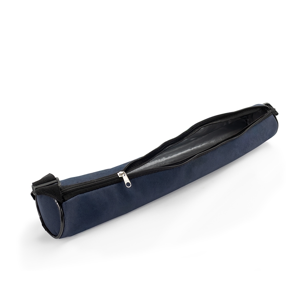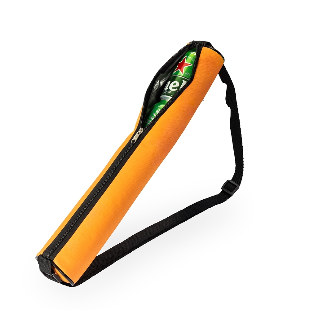 Descrição: Bolsa térmica porta-latas confeccionada em poliéster resistente à água com capacidade para até quatro latas de 350ml. Possui revestimento térmico interno em PVC prateado com acabamento em verniz, que mantém a temperatura das latas por mais tempo. Conta ainda com alça transversal ajustável.