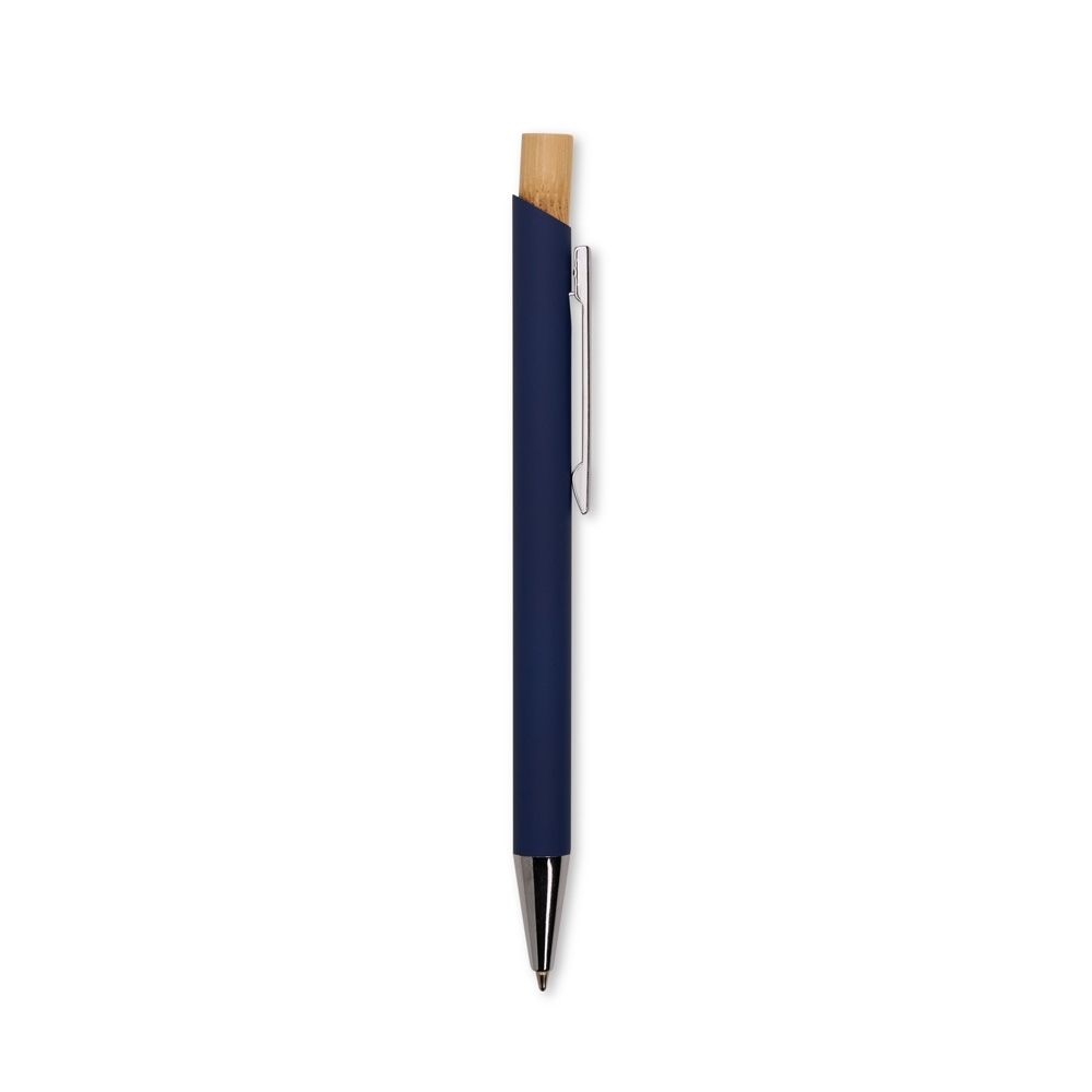 Descrição: Kit executivo composto por uma caderneta e uma caneta. A caderneta possui capa dura em couro sintético, marca-páginas em fita de cetim e elástico para fechamento, além de aproximadamente 80 folhas com pauta. Por sua vez, a caneta metálica conta com detalhe em bambu, acionamento por clique e carga esferográfica azul de 1,0mm. Acompanha uma caixa de papelão com berço interno em espuma.