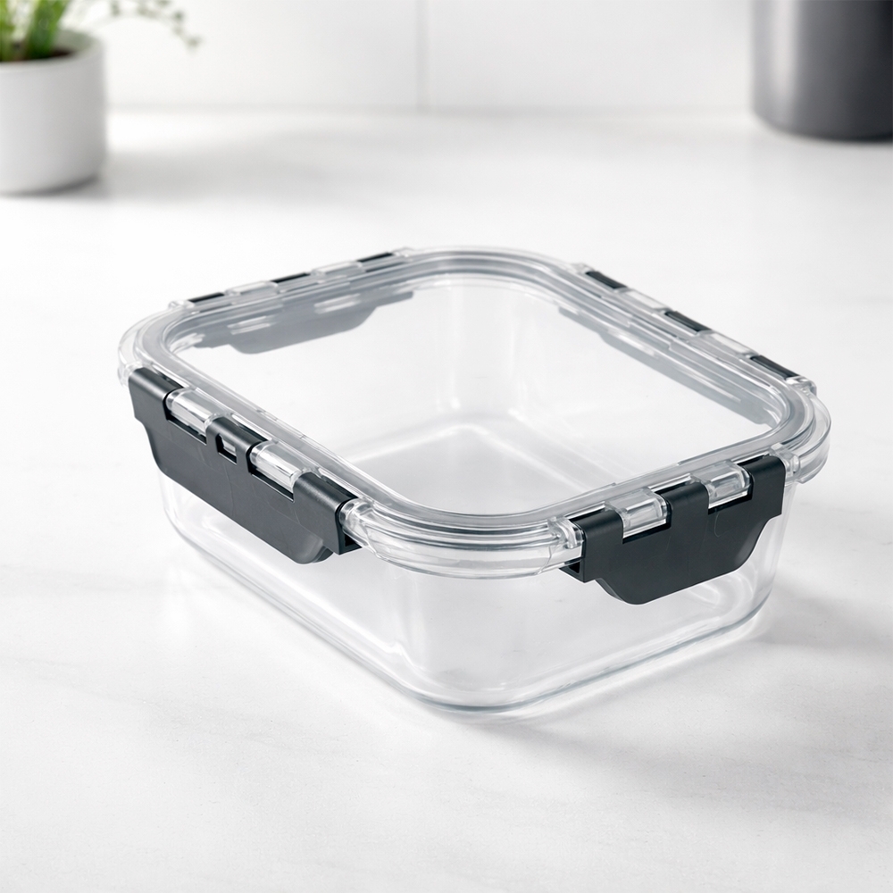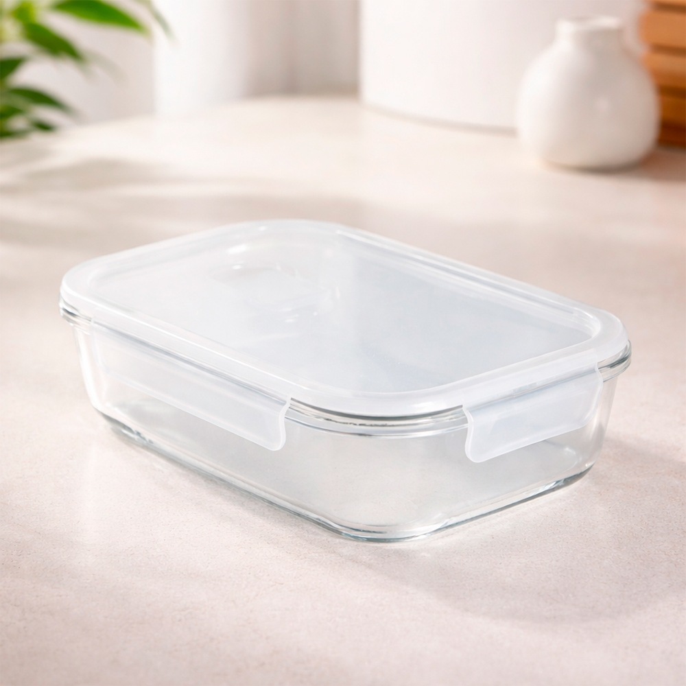 Descrição: Marmita em vidro borossilicato com capacidade para até 600ml. Conta com tampa hermética em PET com travas laterais em polipropileno (PP).